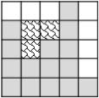 暴雨过后,如果一个方格向左右两侧延伸都能到达瓦片占据的方格,它就会积水。所以图中波浪线格子在暴雨后会积水,屋顶的积水方格总数为 3 。