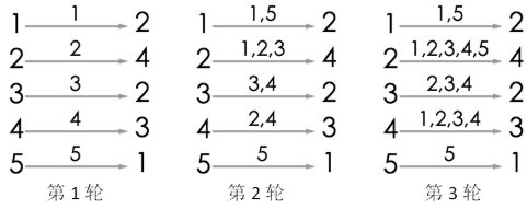 游戏的流程如图所示。当进行完第 3 轮游戏后, 4 号玩家会听到 2 号玩家告诉他自己的生日,所以答案为 3。当然,第 3 轮游戏后, 2 号玩家、 3 号玩家都能从自己的消息来源得知自己的生日,同样符合游戏结束的条件。