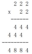 下面是符合样例要求牛式,牛式中用到了数字 2、4、8,这 3 种数字均来自于读入的2,3,4,6,8中的数。