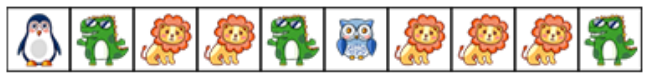 如果连续 <span class="katex math inline" style="font-size:1.21em;line-height:1.2;font-family:KaTeX_Main, "">3</span> 个以上动物卡片相同,且数量是奇数的,只能两两相除,剩下 <span class="katex math inline" style="font-size:1.21em;line-height:1.2;font-family:KaTeX_Main, "">1</span> 个不能消除。