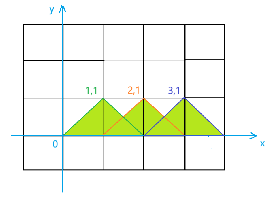 有一个特殊的平面世界,里面所有的物品都处在一个平面内。小胡正在探索这片平面奇景,他看到了一片连绵的山脉,这些山都是等腰直角三角形,所有三角形的斜边都作为山底落在一条直线上。